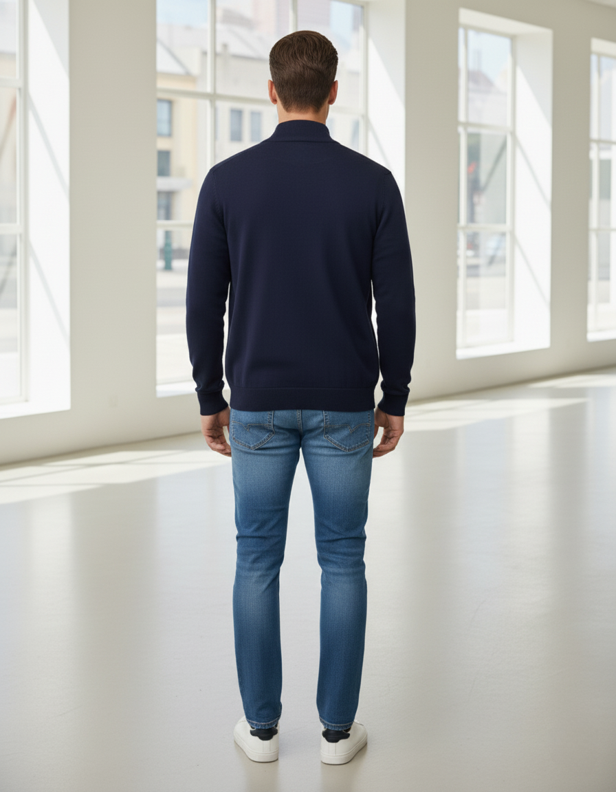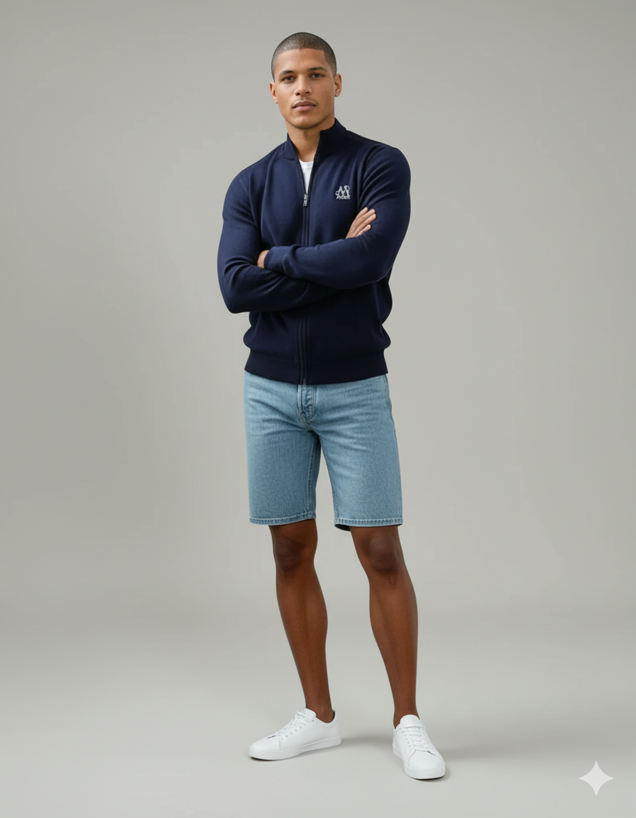 A sleek and minimal men’s zip-up knit jacket designed for effortless style and comfort.