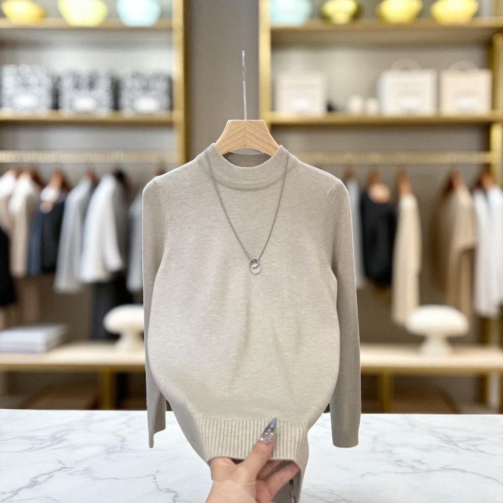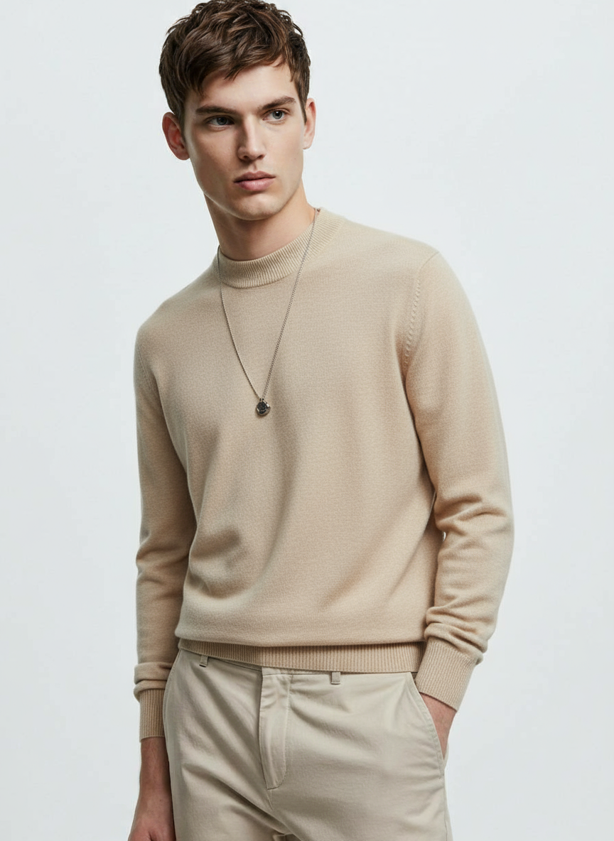 A minimal, elegant high-neck knit sweater designed for effortless layering and everyday comfort.