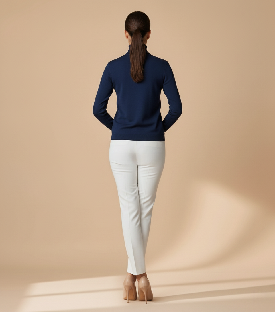 Women’s High-Neck Knit Sweater – Essential Classic Navy Blue
