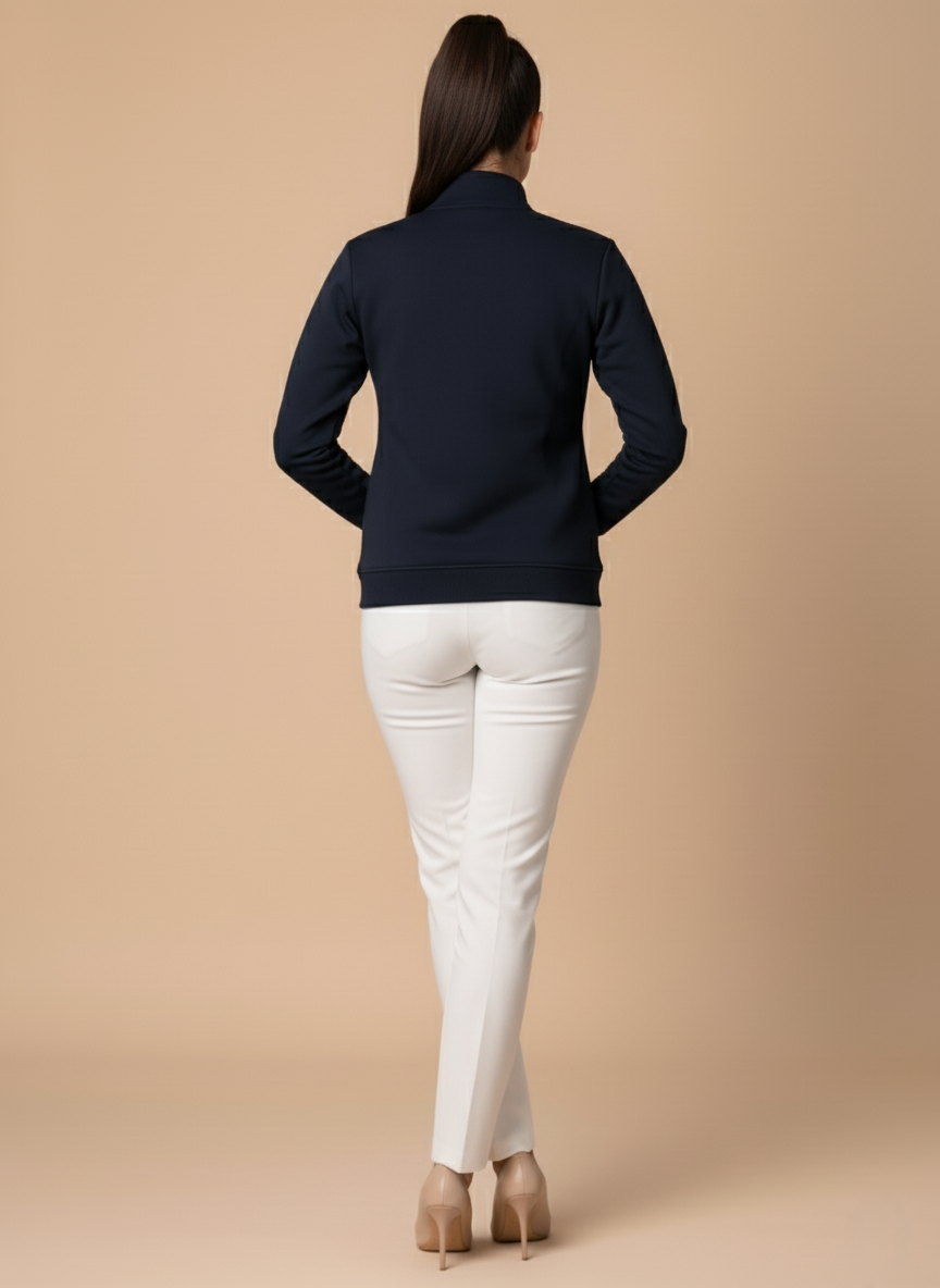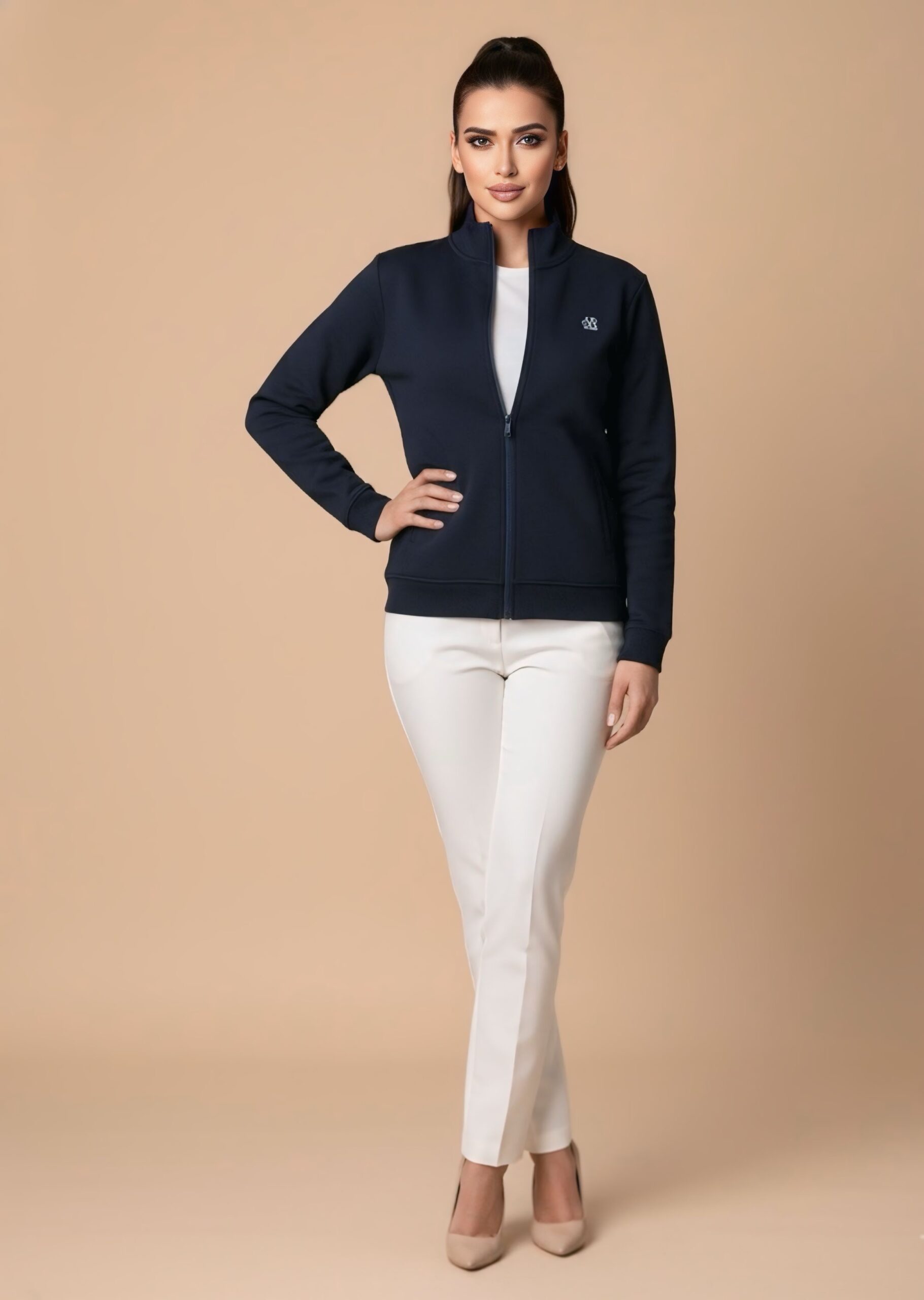 Women’s Zip-Up Knit Jacket – Minimal Style Navy Blue